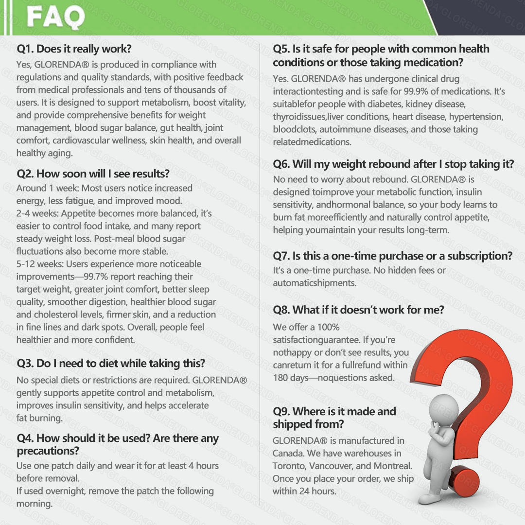 GLOR๐ฌNDAยฎ 10-in-1 Nano Microneedle Patch is a science-driven, non-injectable option designed for adults who want real weight support without harsh routines or extreme plans. At the core of the formula is our A-Blend Metabolic Support: Glucomannan, Berberine, and Cinnamon Extract, developed around a simple, realistic approach that makes weight management feel more manageableโfeeling full sooner, staying more balanced after meals, experiencing fewer cravings (especially sweets and late-night snacking), and making progress that feels sustainable over time. Glucomannan supports natural fullness, Berberine helps support a calmer after-meal response, and Cinnamon Extract supports steadier post-meal energy and appetite signals. NADโบ and Collagen Peptides support cellular energy and skin firmness, helping you feel more toned as your body changes. The rest of the formula provides whole-body support, including gut balance and digestion, liver support, immune support, and steady daily energyโso you feel better beyond the number on the scale. Manufactured in a GMP-certified facility that follows internationally recognized quality and safety standards and aligns with Canadian manufacturing and quality expectations, GLOR๐ฌNDAยฎ offers a simple, comfortable routine designed to support sustainable weight management and long-term wellness.